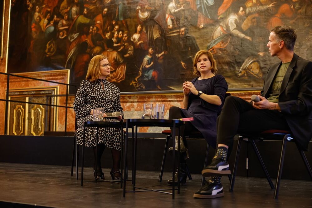 Im Gespräch mit Kathrin Karloff und Florian Traussnig, Bildungsreferent im Bildungsforum bei den Minoriten, erläuterte Brodnig mögliche Reaktionen, wenn der „innere Ruhepol“ fehle und man in einer eskalierenden Situation keinen klaren Kopf bewahren könne. Hinsichtlich der zukünftigen Auswirkungen, mit denen wir durch die Flutung unserer Gesellschaft mit Falschmeldungen in großem Stil schon jetzt konfrontiert sind, äußerte sich Brodnig besorgt, betonte aber die Bedeutung individueller Verantwortung: „Jede und jeder Einzelne von uns kann einen positiven Einfluss darauf ausüben, wie in unserer Gesellschaft miteinander gesprochen wird!“ Ko-Moderator Traussnig arbeitete in diesem Zusammenhang zwei hilfreiche Grundhaltungen bei (digitalen) Debatten heraus: weltanschauungsübergreifende Empathie und intellektuelle Demut.